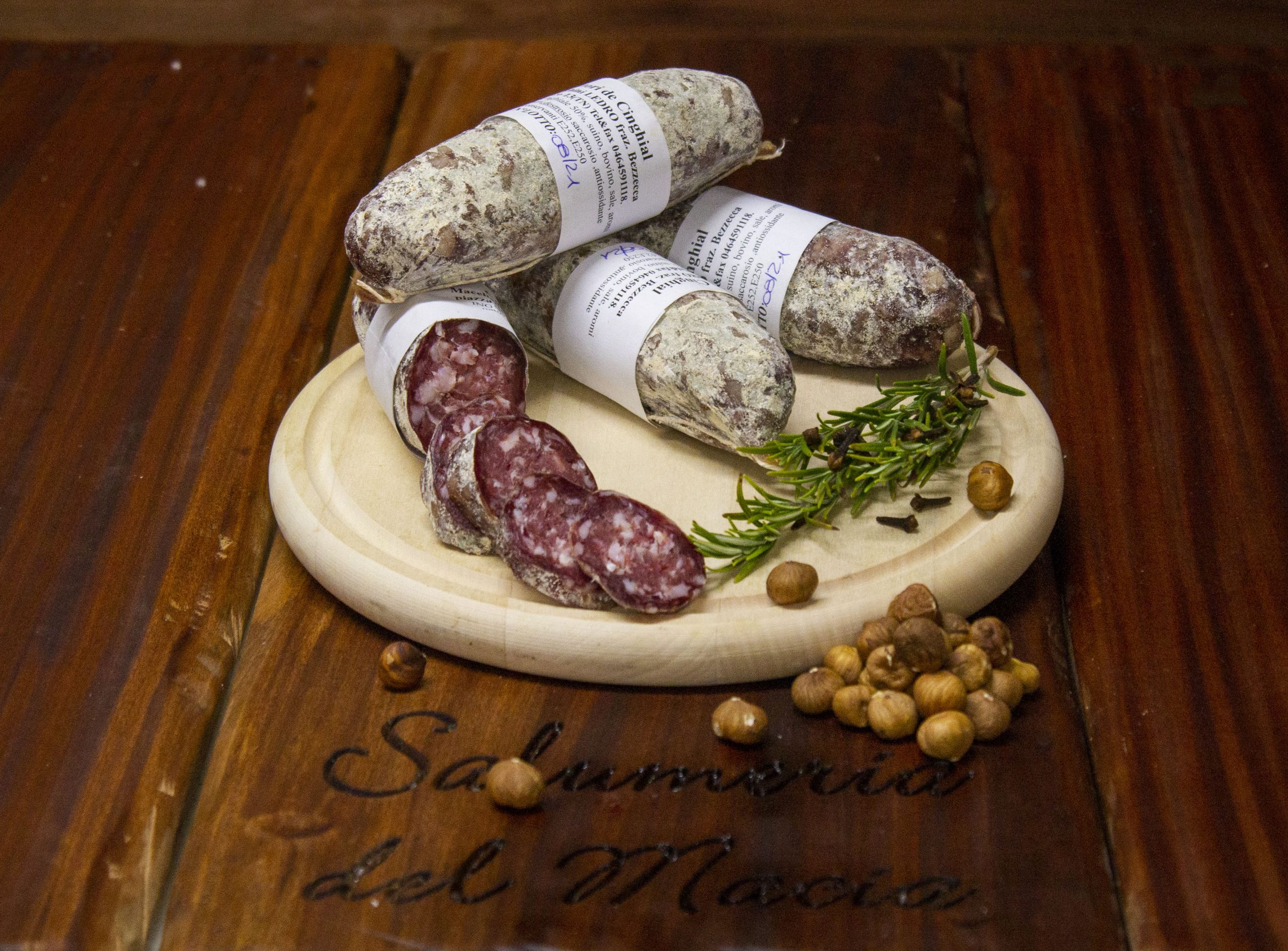 Ingredienti:Carne di cinghiale 50%, suino/bovino, sale, aromi naturali, Zuccheri:destrosio,saccarosio Conservanti E252, E250, Antiossidanti E300